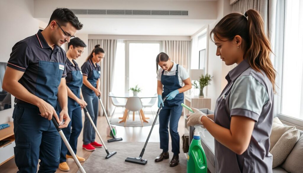 Chúng tôi cung cấp dịch vụ vệ sinh căn hộ và vệ sinh biệt thự. Đội ngũ của chúng tôi chuyên nghiệp và trang thiết bị hiện đại.